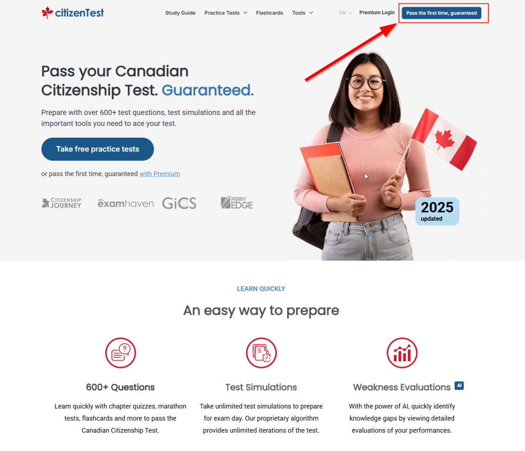 - Go to the CitizenTest.CA website.