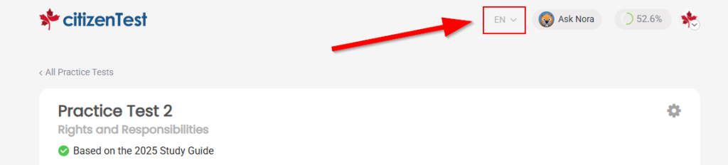 Preparing for your Canadian citizenship test has never been easier with CitizenTest. Whether you prefer English or French, our comprehensive online course is fully available in both official languages, ensuring that all users can study in their language of choice.